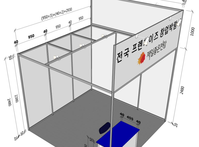 부스 사이즈를 먼저 확인하고, 거기에 맞춰서 현수막을 제작합니다.